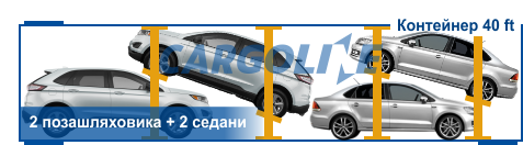 Усе залежить від габаритів авто. У 40-футовий контейнер поміщається 4 стандартних седани, 3 кросовери або 2 повнорозмірних пікапи. Для доставки ексклюзивних і дорогих авто ми рекомендуємо нашим клієнтам використовувати окремий 20-футовий контейнер.